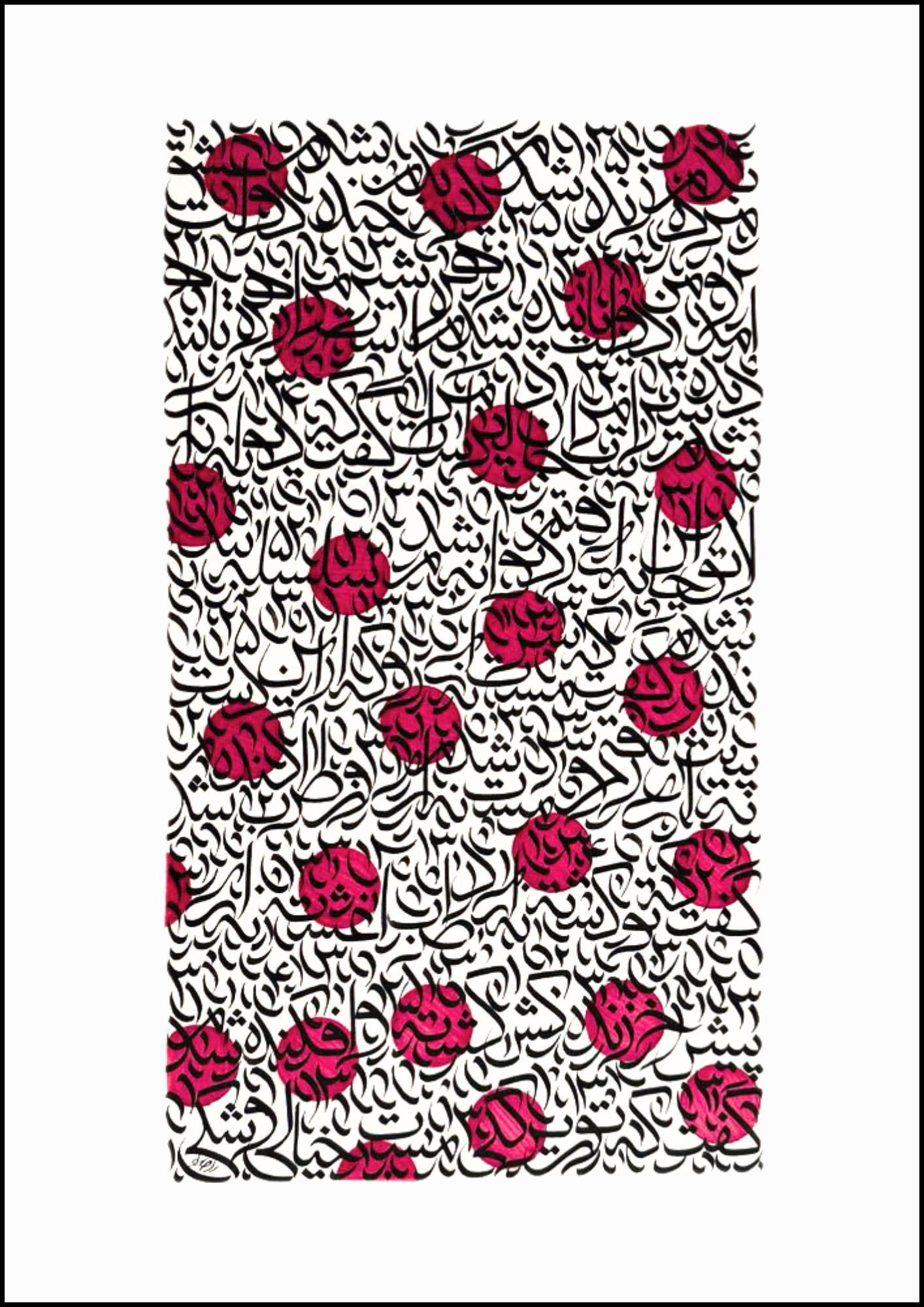Blending the spiritual traditions of Persian calligraphy with a contemporary, abstract sensibility, the works on view reimagine sacred text as immersive visual poetry. This exhibition marks a decade of Beigi’s evolution as an artist and mystic scribe, offering a rare glimpse into the meditative power of form, gesture, and longing.